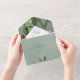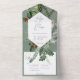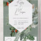 TAMBIÉN DISPONIBLE CON UN CÓDIGO QR PARA ESCAPAR EN LA ZONA RSVP O SIN OPCIONES PARA CENAR. El diseño de esta invitación a la boda presenta un hermoso marco de pino de invierno, holly, eucalipto y otros paisajes verdes con bayas rojas. El fondo es un verde sabio suave que está angustiado por el blanco. Creado por Simply Farmhouse Press.