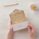 Toda en una invitación a la boda con luces de cuerdas de bonito, tarros de albañil, nombres de estilo característico y tipografía de moda en un fondo rústico de kraft. La invitación incluye una tarjeta RSVP perforada que puede ser dirigida individualmente o dejada en blanco para que pueda escribir a mano los detalles de la dirección de su invitado. Diseñado por Thisisnotme©