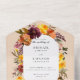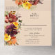 Elementos: florales de caída vibrante contra un fondo de melocotón pálido. Fuentes serif clásicas. Colores: marsala, naranja, siena quemada, ciruela, verde, melocotón. Temas: rústico, otoño, otoño, boho, bohemio, campo, cosecha. Colección: Colección de Bodas de Wreath de la Rustic Marsala Quemada Naranja Fall. Tipo de producto: Invitaciones de boda todo en uno