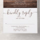 Todo en una invitación a la boda con girasoles de bonito, luces de cuerdas, nombres de estilo y tipografía de moda sobre un fondo rústico de madera. La invitación incluye una tarjeta RSVP perforada que puede ser dirigida individualmente o dejada en blanco para que pueda escribir a mano los detalles de la dirección de su invitado. Diseñado por Thisisnotme©