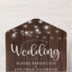 Las rústicas luces de madera y cuerdas encajan todas en una boda con un fondo rústico de madera con cuerdas de luces brillantes y encaje de estilo vintage en las esquinas inferiores. La palabra boda se inicia en una tipografía elegante y rústica, lo que hace de este el diseño perfecto para su boho o boda campestre. **No hay opción de comida en este diseño.** Póngase en contacto con nosotros en cedarandstring@gmail.com si necesita ayuda con el diseño o productos a juego.