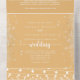 Este rústico boda amarillo caligrafía, todo en una sola invitación, es perfecto para un boda moderno. El diseño está decorado con bonitas luces de cuerda pintadas a mano con espléndidas estrellas de fondo amarillo. Guarde el papel incluyendo más detalles en la invitación en lugar de en una tarjeta separada.