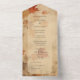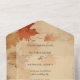 Este exquisito diseño presenta un impresionante fondo de hojas rústicas de otoño, cuidadosamente decoradas con colores de otoño mudos. Los tonos suaves y terrenales dan un toque acogedor y romántico a tu boda íntimo de otoño. Las invitaciones de boda todo en uno son hermosas y prácticas al combinar la invitación de boda con una postal RSVP fácil de quitar perforada. También son rápidos y fáciles de preparar para el correo. Simplemente dirija la invitación, doble el pliegue trasero y selle con los pegatinas claros incluidos. Una vez que sus invitados reciben la invitación, simplemente rompen la tarjeta RSVP perforada y la tiran por correo.