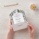 Aprovecha tu estancia con esta elegante invitación de bodas con hermosos árboles de abedul y una moderna tipografía con una tarjeta postal RSVP desmontable. Simplemente agregue los detalles de su evento en esta plantilla fácil de usar para convertirla en una invitación única.