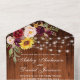 Boda rústico, acuarela borgoñona floral, maderas y cadenas Boda de encaje Todo en una sola invitación con tarjeta RSVP incluye rosas borgoñas, rosas rosadas, rosas rojas, girasoles y vegetación botánica.