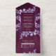 Invitación Todo En Uno Rústico Boda de platillos con flores púrpura