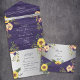 Invitación Todo En Uno Rústico Boda floral púrpura de Woodland