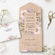 Invitación Todo En Uno Rústico Burlap Mauve Purple Floral Bouquet Boda