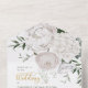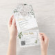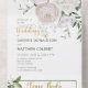 Invitación Todo En Uno Rústico Código QR blanco floral
