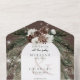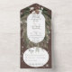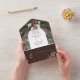 TAMBIÉN DISPONE DE UN CÓDIGO QR PARA ESCANEAR O CON OPCIONES PARA CENAR. Este diseño presenta un ramo rústico de pino verde y piña sobre un suave fondo marrón de cacao con flores blancas. Se acentúa con un resguardo blanco brillante para ilustrar la magia de las hermosas vacaciones de invierno. Ideal para Navidades o bodas de invierno. Las invitaciones todo en uno personalizadas son una combinación única de una invitación personalizado bien impresa y una postal RSVP fácil de desgarrar. ¡Y son tan fáciles de usar! Simplemente se pliega, después sella la solapa de atrás con los tres pegatinas claros incluidos y el correo. Y cuando sus invitados reciben la invitación de su personalizado, ¡simplemente sacan la tarjeta RSVP perforada y la envían de vuelta al correo!