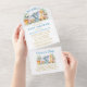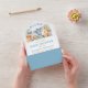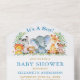 Invitación Todo En Uno Safari Animals Blue Gold Baby Shower y libros