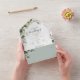 Delicate watercolour eucalyptus leaves in soft sage green pair perfectly with gold geometric accents, creating a fresh yet refined look that suits garden weddings, rustic weddings, boho celebrations, and elegant modern affairs alike.