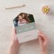 Un elegante verde sabio minimalista todo en una invitación a la boda con tu foto, fecha especial y detalles de boda establecidos en la tipografía clásica de moda. La invitación incluye una tarjeta RSVP perforada que puede ser dirigida individualmente o dejada en blanco para que usted escriba a mano los detalles de la dirección de su invitado. Diseñado por Thisisnotme©