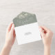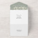 Esta cadena todo en uno ilumina la invitación a una boda verde sabia y presenta una tipografía elegante. La invitación incluye una tarjeta RSVP perforada que puede ser dirigida individualmente o dejada en blanco para que pueda escribir a mano los detalles de la dirección de su invitado. Diseñado por Thisisnotme©