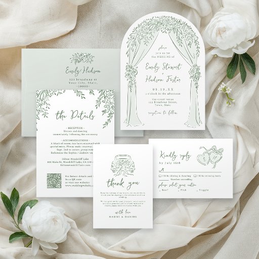 Invitación Todo En Uno Sage Hand Drawn Floral Arch Whimsical Wedding