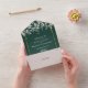 Todo en una invitación nupcial con vegetación de color bonito y elegante tipografía moderna sobre un fondo esmeralda. La invitación incluye una tarjeta RSVP perforada que puede ser dirigida individualmente o dejada en blanco para que usted escriba a mano los detalles de la dirección de su invitado. Diseñado por Thisisnotme©