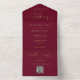 Invitación Todo En Uno Script Hearts Burgundy Y Gold QR Code Boda