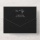 Elegante y moderna invitación de boda en blanco y negro con sello de letra a mano y código QR para responder en línea y sitio web de detalles de la boda, con superposición de foto personalizada con nombres de los novios en caligrafía. Fácil de personalizar con tu foto y detalles en ambos lados. La invitación es adecuada para bodas casuales modernas minimalistas y neutras.