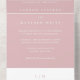Plantilla única de invitación de boda All In One con tarjeta rsvp para una opción conveniente y de bajo costo para parejas con experiencia en presupuesto. La moderna pero elegante invitación incluye su monograma de dos letras en la parte superior junto con los detalles de su boda en blanco sobre un polvoriento fondo rosa rosa. Una moda y un diseño de diseño, ideal para una pareja minimalista.