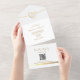 Invitación Todo En Uno Simple Elegante Boda de Monograma de Oro Código QR