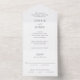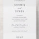 Elegant all in one wedding invitation featuring a simple design with a modern sans serif font and an elegant script font. The attached RSVP card has meal choices for your guests.