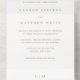 Plantilla única de invitación de boda All In One con tarjeta rsvp para una opción conveniente y de bajo costo para parejas con experiencia en presupuesto. La moderna pero elegante invitación incluye su monograma de dos letras en la parte superior junto con los detalles de su boda en oro sobre un fondo blanco. Una moda y un diseño de diseño, ideal para una pareja minimalista.