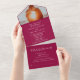 Añade tu foto favorita a la parte superior de estas invitaciones de boda triplias en blanco y arándano que incluyen tus detalles en secciones con letras de moda y una tarjeta RSVP desmontable para que los huéspedes la completen y regresen. **RECUERDE poner un sello en la sección de tarjetas RSVP.