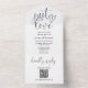 Esta invitación a la boda minimalista, todo en uno, presenta una tipografía elegante. La invitación incluye una tarjeta RSVP perforada con el código QR de su sitio web boda. Diseñado por Thisisnotme©