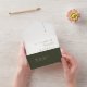 Esta invitación de boda creativa, todo en uno y el diseño RSVP, mostrado aquí en verde perla blanca y musgo oscuro, tiene acentos diminutos en forma de estrella y una plantilla para añadir fácilmente tu evento y detalles de correo. Como parte de una suite boda de moda con una paleta de colores cálida inspirada en la naturaleza y un diseño minimalista, tiene un aspecto atemporal y sofisticado que impresionará a sus huéspedes y ayudará a que su día sea inolvidable. Busque ID1046 para ver todos los productos de este conjunto de bodas.