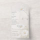 Disfrute del encanto rústico y de la elegancia intemporal de su próximo boda con esta exquisita invitación a la boda todo en uno. Esta invitación cuidadosamente elaborada combina comodidad con un sencillo diseño de margarita de color acuático para crear una primera impresión inolvidable para sus huéspedes. Las invitaciones de boda todo en uno son hermosas y prácticas al combinar la invitación de boda con una postal RSVP fácil de quitar perforada. También son rápidos y fáciles de preparar para el correo. Simplemente dirija la invitación, doble el pliegue trasero y selle con los pegatinas claros incluidos. Una vez que sus invitados reciben la invitación, simplemente rompen la tarjeta RSVP perforada y la tiran por correo.