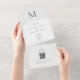 Modern all-in-one wedding invitation featuring a refined single initial monogram and clean typographic layout. Designed for civil ceremonies, city hall weddings, and modern legal celebrations, this invitation combines ceremony details and RSVP in one elegant folded format.