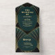 Invitación Todo En Uno Sofisticado Boda Art Deco Verde y Oro