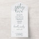 Las invitaciones Todo en uno son la manera más fácil y bella de combinar una invitación personalizada preciosa con una postal RSVP separable y autoperforada. ¡Así de sencillo! Simplemente se tiene que doblar, sellar con las pegatinas transparentes incluidas, y listas para enviar. En cuanto tus invitados reciban su invitación personalizada, solo tendrán que separar la postal por la línea autoperforada y mandártela de vuelta.