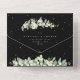Invitación a bodas de invierno y tarjeta de respuesta para los invitados. Con bayas de nieve pintadas a mano y tallos de eucalipto dispuestos en hermosos elementos botánicos y marco contra un fondo interior negro exterior y crema. Todo el texto es completamente editable, y los puntos dispersos en la parte delantera y trasera se pueden borrar antes de pedir si lo prefiere. Vea esta colección en mi tienda para ver las versiones de este producto con opciones de texto alternativas, en colores diferentes y para coordinar elementos.