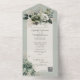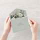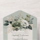Esta encantadora invitación a la boda All in One captura la esencia de la naturaleza con su impresionante diseño floral en tonos verdes sobre un tranquilo fondo verde sabio. Esta suite de invitados es la elección perfecta para parejas que buscan un toque elegante y romántico a su día especial. Las invitaciones de boda todo en uno son hermosas y prácticas al combinar la invitación de boda con una postal RSVP fácil de quitar perforada. También son rápidos y fáciles de preparar para el correo. Simplemente dirija la invitación, doble el pliegue trasero y selle con los pegatinas claros incluidos. Una vez que sus invitados reciben la invitación, simplemente rompen la tarjeta RSVP perforada y la tiran por correo. La adición del código QR permite a los clientes acceder fácilmente a la página web de su boda para obtener información, incluyendo detalles de recepción y opciones de cena.