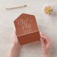 Esta minimalista invitación a la boda incluye una tipografía elegante con un fondo de terracota. La invitación incluye una tarjeta RSVP perforada con el código QR de su sitio web boda. Diseñado por Thisisnotme©