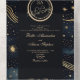 Sumérjase en el encantador cielo nocturno con nuestra Elegante Invitación de Boda Moderna en Negro y Oro Celestial. Con un romántico monograma en la parte superior, un telón de fondo celeste de estrellas y una cautivadora foto de la pareja, prepara el escenario para una celebración celestial. Añade tu imagen, sitio web y código QR para RSVP y más información, creando una invitación personalizada que refleja la belleza celeste de tu amor.