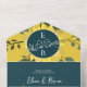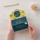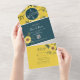 Eleva tu boda con nuestra invitación "todo en uno" que combina a la perfección el encanto botánico y el estilo boho moderno. Con un monograma de girasol y aves silvestres dibujadas a mano, este diseño rústico de color amarillo vibrante y verde esmeralda marca el tono perfecto. Un guión moderno escrito a mano añade un toque personal, mientras que un conveniente código QR hace de RSVP una brisa. Personalízalo con tu foto, detalles del boda, e imagen del personalizado en la parte de atrás para un conservadurismo verdaderamente único.