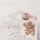 Invite friends and family in style and set the tone for your special day with this charming birthday invitation. Design features teddy bear with pink balloons on beige background.
