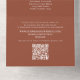 Este diseño presenta una moderna terracota simple y elegante, con un sitio web de código qr URL en línea, escaneado web escaneado información de invitados, guión de caligrafía de imagen de pareja de fotos, un sello elegante y envío, triple triple boda de presupuesto, tonos de tierra de terracota, colores de óxido naranja botánico, simple y simple llanura, un minimalista simple y elegante