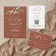 Este diseño presenta una moderna terracota simple y elegante, con un sitio web de código qr URL en línea, escaneado web escaneado información de invitados, guión de caligrafía de imagen de pareja de fotos, un sello elegante y envío, triple triple boda de presupuesto, tonos de tierra de terracota, colores de óxido naranja botánico, simple y simple llanura, un minimalista simple y elegante