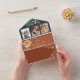 Disfrute de la elegancia rústica con esta elegante y moderna y florida terracota y una invitación boda todo en uno de color azul marino. Con un corazón romántico de cuerda, acuarela y acentos florales dorados, una sección de fotos y un cómodo código QR para RSVP, este diseño es perfecto para bodas de otoño y bohemia.