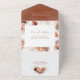 Estas elegantes pampas hierba y flores de terracota tropical todo en uno invitaciones de boda en español son tan compactas y te hacen regodearte cuando las desdoblas. Elegante diseño vibrante de boho incluye una invitación a la boda, dirección del sitio web del boda y una tarjeta RSVP con dirección propia que los huéspedes pueden enviar por correo electrónico.