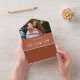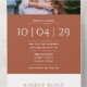 Una elegante invitación a la boda minimalista todo en uno de terracota que incluye tu foto, fecha especial y detalles de boda en una tipografía clásica de moda. La invitación incluye una tarjeta RSVP perforada con el código QR de su sitio web boda y detalles. Diseñado por Thisisnotme©