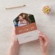 Una elegante terracota minimalista en una sola invitación con tu foto, fecha especial y detalles de boda enmarcados en una tipografía clásica de moda. La invitación incluye una tarjeta RSVP perforada que puede ser dirigida individualmente o dejada en blanco para que usted escriba a mano los detalles de la dirección de su invitado. Diseñado por Thisisnotme©