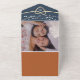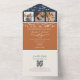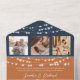 Presentamos nuestra sofisticada invitación a la boda todo en uno, combinando elegancia, moda, boho y elementos modernos a la perfección. Con una impresionante combinación de terracota y azul marino, nuestra invitación cuenta con un romántico corazón de cuerda dorada entrelazado con delicadas luces de cuerda. Voltea hacia atrás para encontrar cuatro preciadas fotos que captan la esencia de la historia de amor de la pareja. Personalice con sus propias fotos, comparta su sitio web boda y simplifique los RSVP con un código QR conveniente. Aprovecha el romanticismo atemporal y el estilo contemporáneo con cada detalle, creando el escenario para una inolvidable celebración del amor.