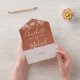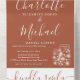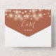 Todo en una invitación de boda con luces de cuerda de bonito, jarras de albañil, nombre de guión elegante y iniciales de monograma en un fondo de terracota. La invitación incluye una tarjeta RSVP perforada que puede ser dirigida individualmente o dejada en blanco para que pueda escribir a mano los detalles de la dirección de su invitado. Diseñado por Thisisnotme©