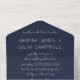 Elementos: tipografía manuscrita, fuentes caprichosas. Colores: texto plateado sobre fondo marino. Temas: casual, foto, al aire libre, romántico, cervecería, noche estrellada, capricho, boda de patio trasero, boda chill. Colección: Typografía manuscrita casual Tipo de producto de la colección Boda de marina y plata: Invitaciones de boda todo en uno