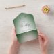 Invitación Todo En Uno Verde esmeralda y blanco desenfoque moderno sin ce