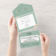 Invitación Todo En Uno Verde sabio, oro y spray de flores